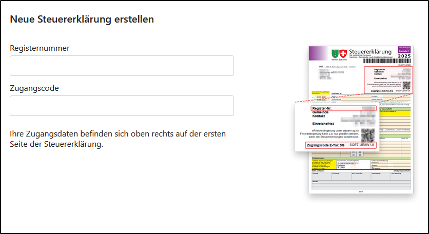 Sollten Sie Ihr Aktivierungsschreiben mit der PID-Nummer und dem Identifikationscode verlegt haben, können Sie bei der Steuerbehörde in St. Gallen ein neues Schreiben anfordern.