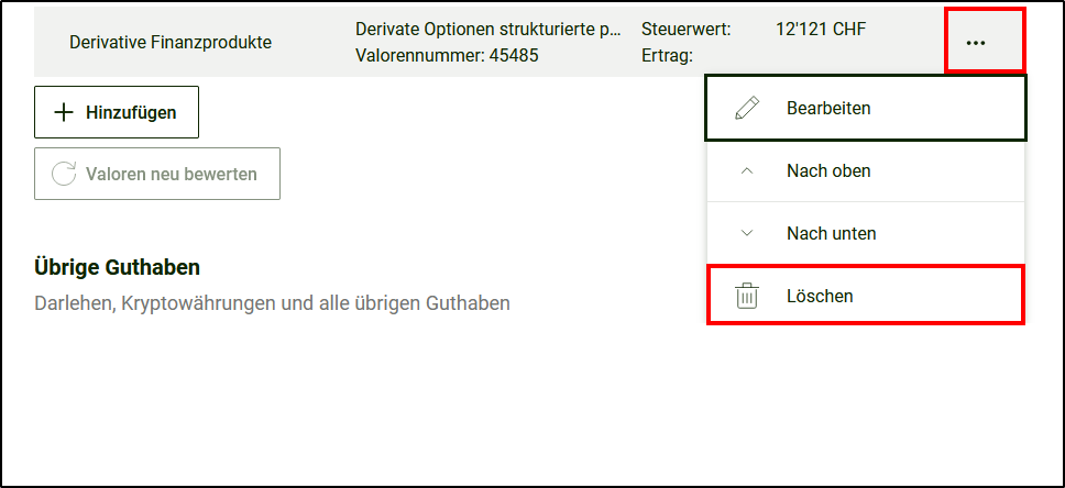 - Klicken Sie rechts in der Zeile, welche Sie löschen möchten, auf die <drei Punkte>.