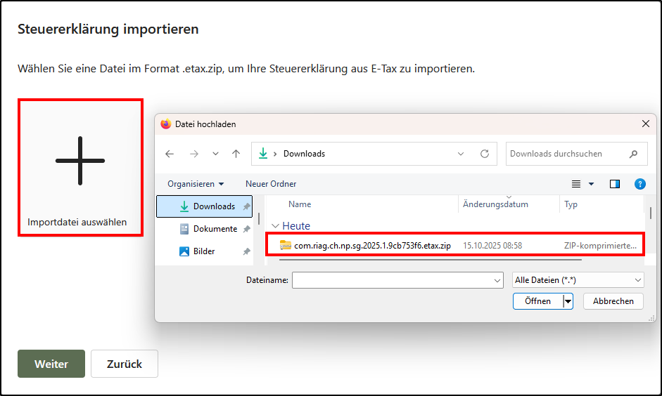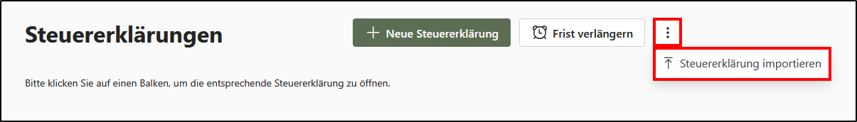 Wählen Sie auf der Startseite <Steuererklärung importieren>.