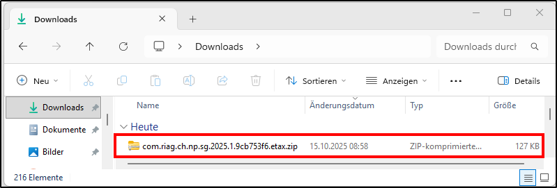 Es wird eine Zip-Datei heruntergeladen. Standardmässig befindet sich die Datei nach dem Herunterladen im Download-Ordner.
