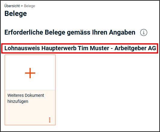 Sobald die Steuererklärung ausgefüllt ist, zeigt der Belegmanager die entsprechenden Belegfelder an: