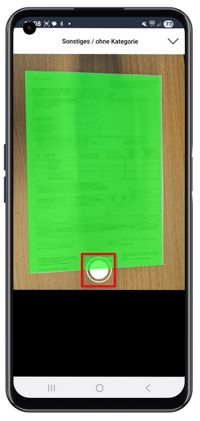 - Halten Sie das Smartphone ruhig über das Dokument und tippen Sie auf den <weissen Kreis>, um ein Foto aufzunehmen.