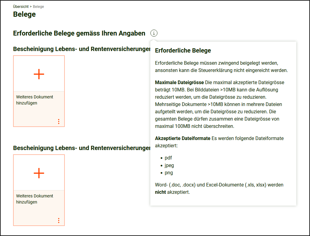 Die maximale Dateigrösse für Belege beträgt 10 MB.