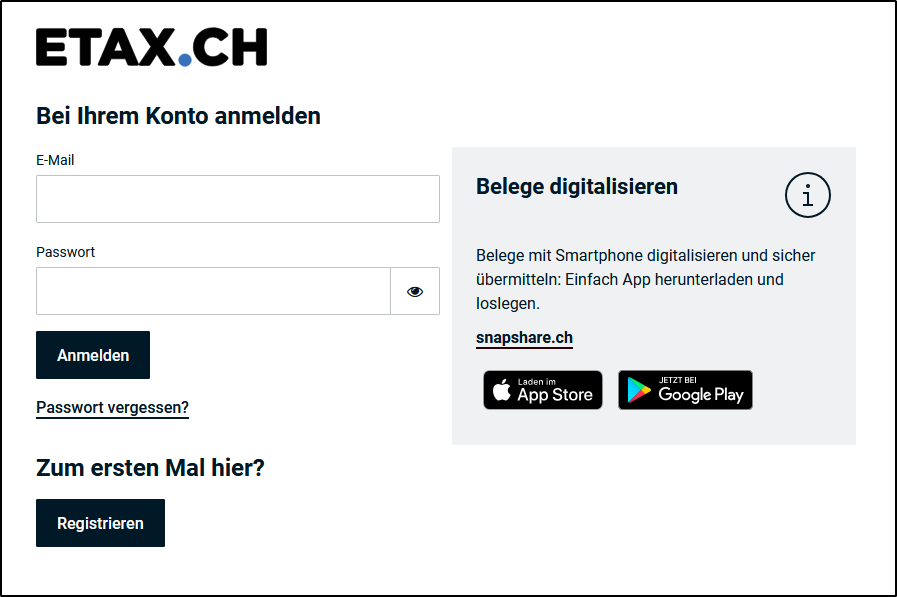 - Nachdem Sie auf den Link geklickt haben, öffnet sich die Anmelde-Seite von E-Tax SG. Melden Sie (der Empfänger/die Empfängerin) sich mit Ihrem Benutzerkonto an.