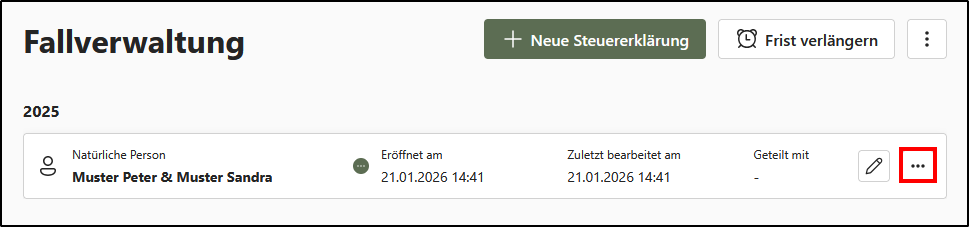 - Klicken Sie bei der gewünschten Steuererklärung rechts auf die <drei Punkte>.