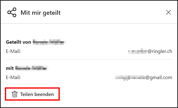 - Nach dem Beenden der gemeinsamen Nutzung wird das Symbol unter „Geteilt mit“ nicht mehr angezeigt.