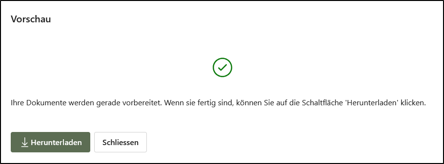 - Durch Klicken auf den Button wird ein neues Fenster geöffnet. Nach einer kurzen Berechnungszeit erscheint der Button <Herunterladen>, über den Sie einen Entwurf der Steuerformulare öffnen können.