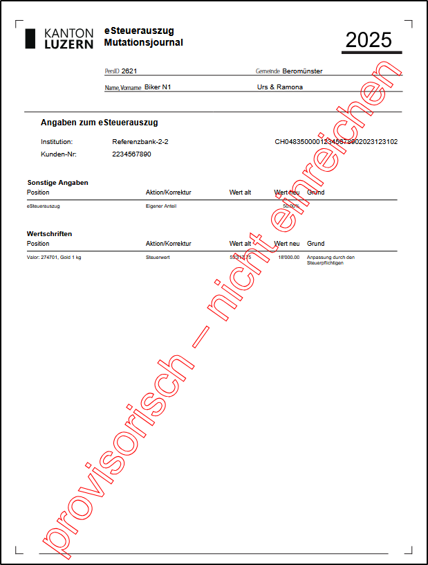 eSteuerauszug Mutationsjournal